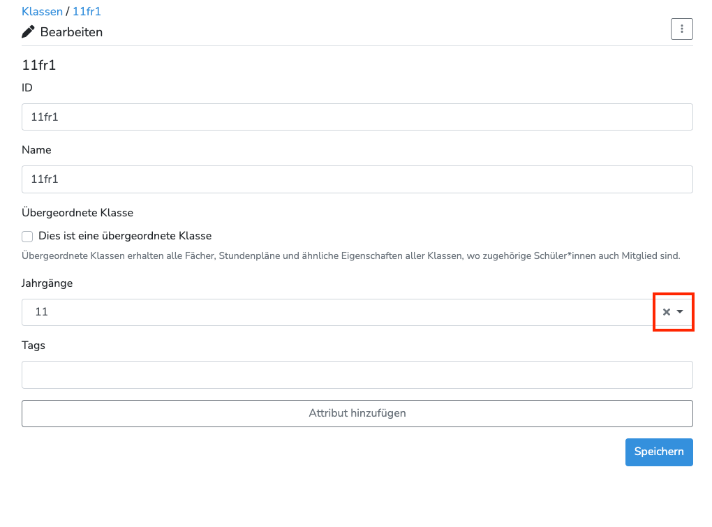 In den Klasseneinstellungen klicken Sie jetzt auf das kleine Kreuz neben dem Jahrgang.
